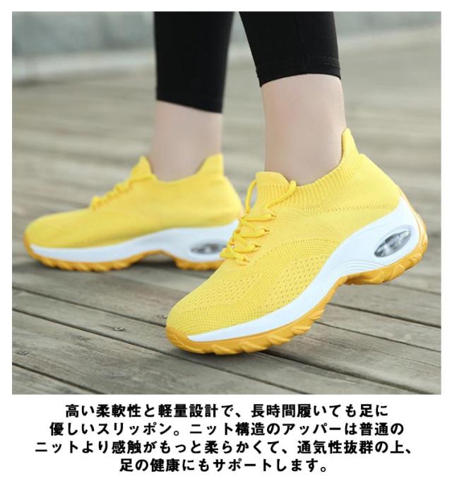 | 【厚底・美脚】5cm厚底のデザインなので、足を長めて見えさせる効果があります。通常より身長が高く見えますので、適度な体格比率をアップします。 【軽量柔軟】高い柔軟性と軽量設計で、長時間履いても足に優しいスリッポン。ニット構造のアッパーは普通のニットより感触がもっと柔らかくて、通気性抜群の上、足の健康にもサポートします。 【通気性】通気性が良く蒸れを防ぐので、爽やかな履き心地が続きます。着用時の季節を選びません! 【シンプル実用性】どのシーンにも存在感を出してくれる一足、一年を通しても常に愛されるデザインです。フレッシュなカラーリングとデザインなのでどんなボトムスにも合います。ウオーキング向けのデザインは履きやすくて、カジュアル用にも関係なく、一年中幅広いシーンに活躍してくれます。毎日の通勤(ナースシューズとしてはお勧めます)時に履くだけではなく、外回り、ウオーキング、ジョギング、旅行、バイト等シーンもお勧めです。 | |