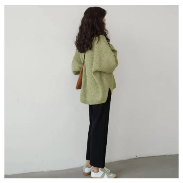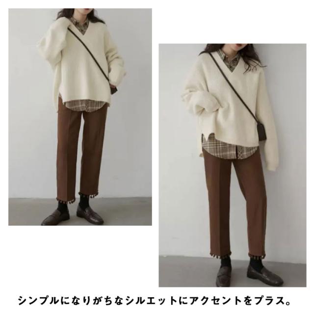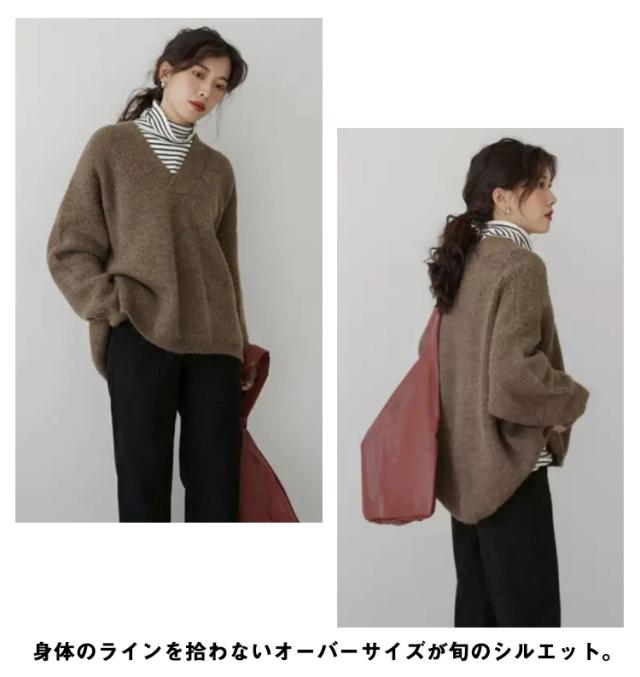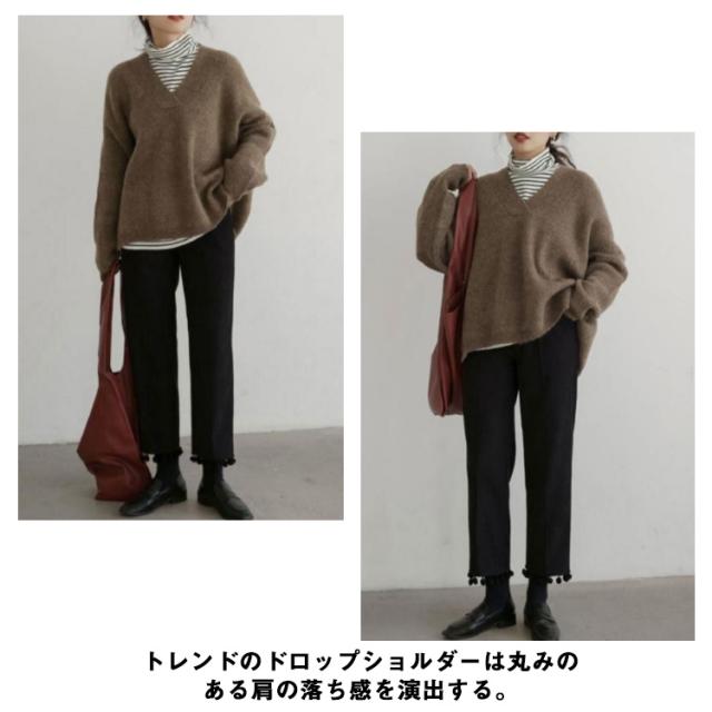 | 柔らかな落ち感が女性らしさを引き立てる、オーバーサイズのニットプルオーバー。 身体のラインを拾わないオーバーサイズが旬のシルエット。 トレンドのドロップショルダーは丸みのある肩の落ち感を演出する。 顔周りをすっきり見せつつ、ほんのり色っぽく見せる深すぎないVネック。 カジュアルにも、ガーリーにもデイリーに着回せる、使い勝手の良い一枚です。 シンプルになりがちなシルエットにアクセントをプラス。 | |