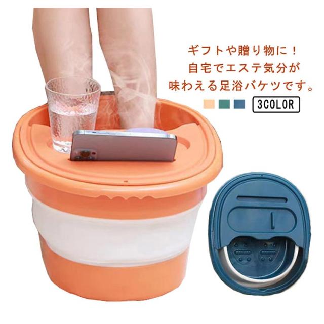 フットケア 折り畳み マッサージャー 足湯バケツ 蓋付き コンパクト 足浴バケツ 折りたたみ 軽量 収納便利 持ち運び便利 お風呂 温める 足の冷え対策 フットバス