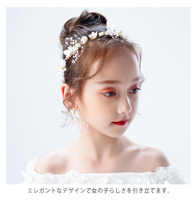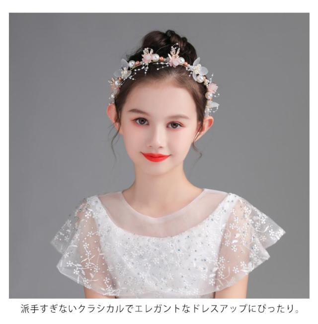 可愛い カチューシャ ヘッドドレス 女の子 ヘアアクセサリー 結婚式 子供用 フラワー パーティー パール 発表会 入学式 卒業式 髪飾り