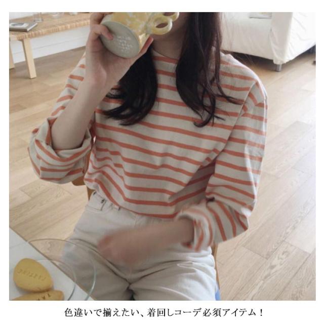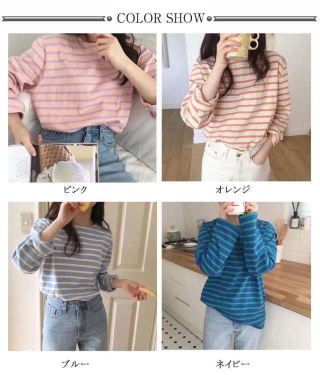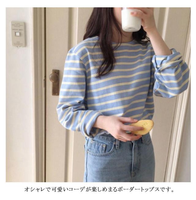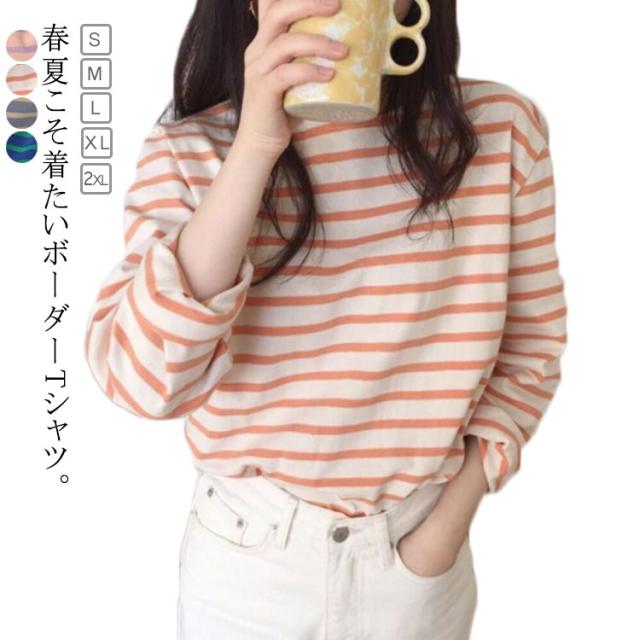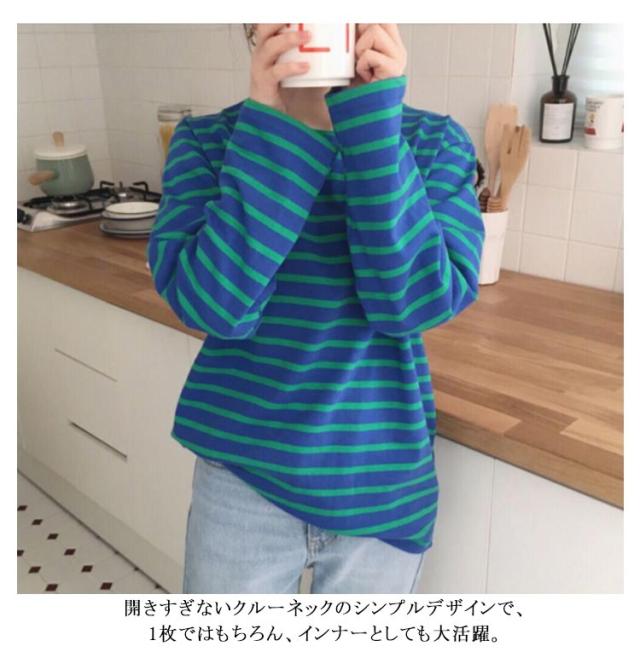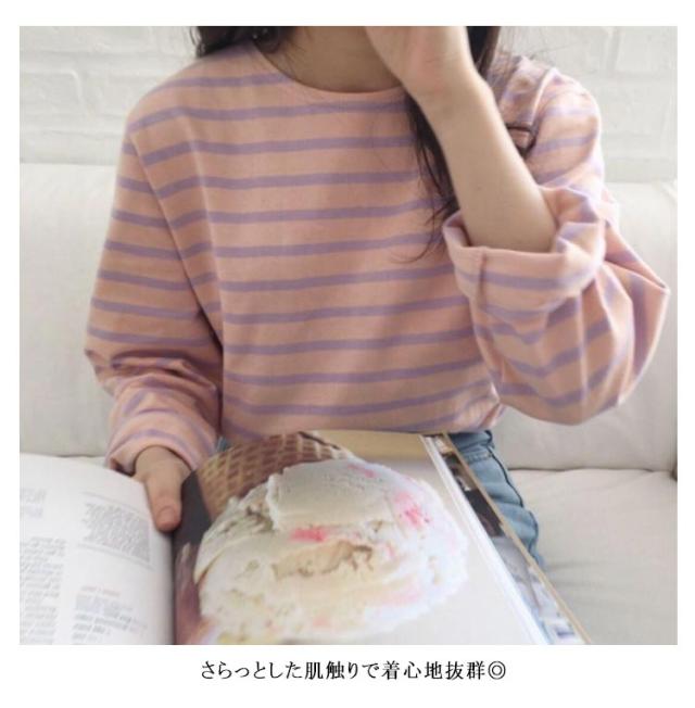 クルーネック カットソー 長袖 ロングスリーブ レディース ボーダー柄 トップス 普段着 ロンT 春カラー おしゃれ かわいい カジュアル ボーダーTシャツ