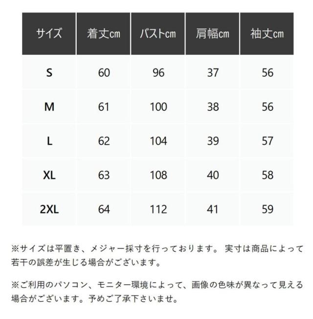 | サイズについての説明 | 【サイズ】画像を参照お願い致します。 ※上記サイズは平置き実寸になります。 サイズ表の実寸法は商品によって1-3cm程度の誤差がある場合がございます。 |