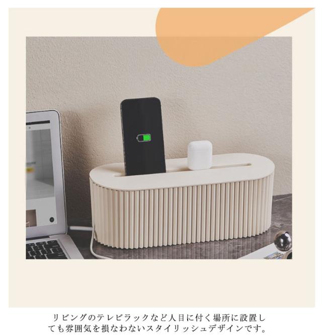 | 小型電源タップ(長さ29cmまでのタップ)、配線などをすっきり収納できます。 蓋にケーブル穴が付いて取り出しは便利です。 プラスチック製なので、汚れなども簡単に拭き取りでき、洗うことも可能です。 リビングのテレビラックなど人目に付く場所に設置しても雰囲気を損なわないスタイリッシュデザインです。 | |