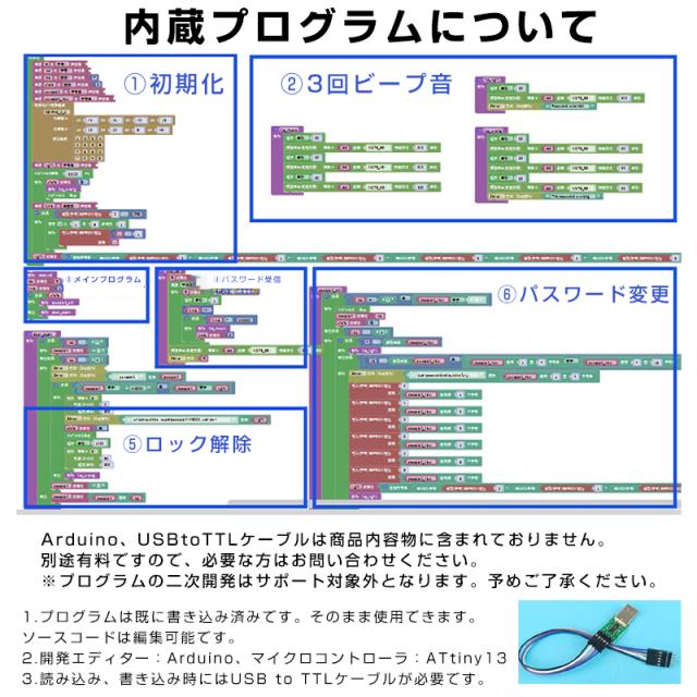 ※Arduino、USBtoTTLケーブルは商品内容物に含まれておりません。別途有料ですので、必要な方はお問い合わせください。