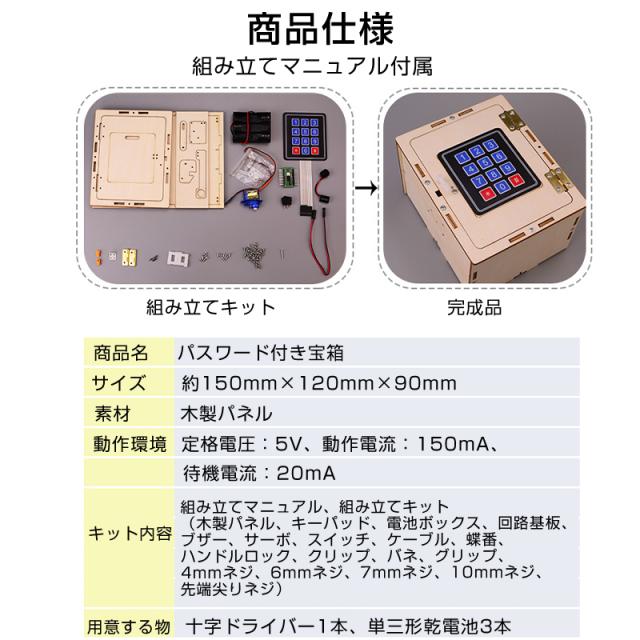 子供用 パスワード付き宝箱 組立キット 宝石箱 金庫 秘密 ミニロッカー 貯金箱 収納ボックス 工作 おもちゃ 小物入れ プレゼント 知育玩具 夏休み
