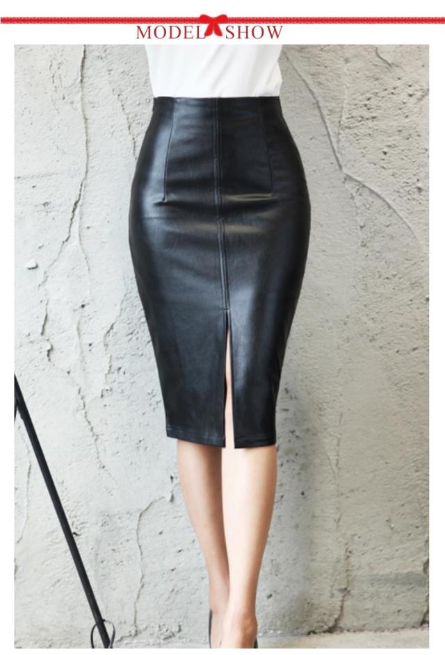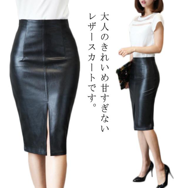レザー 秋 スリット ひざ丈 レディース フェイクレザー 仕事 オフィス 春 ブラック 黒 タイトスカート セクシー 膝丈 きれいめ スカート ボトムス 欧米 人気 嫁 人工皮革 かっこいい ペンシルスカート