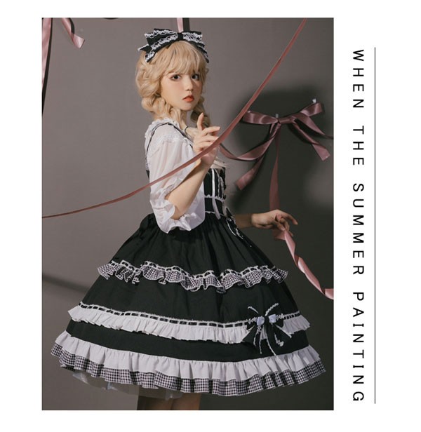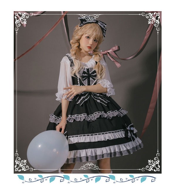 【送料無料】ロリータ jsk ワンピース 可愛い プリンセスドレス お姫様 Lolita ロリータ服 リボン フリル 可愛いコスチューム コスプレ衣装 文化祭