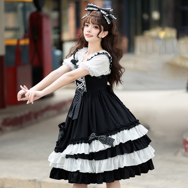 【送料無料】ロリータ jsk ワンピース 可愛い プリンセスドレス お姫様 Lolita ロリータ服 リボン フリル 可愛いコスチューム コスプレ衣