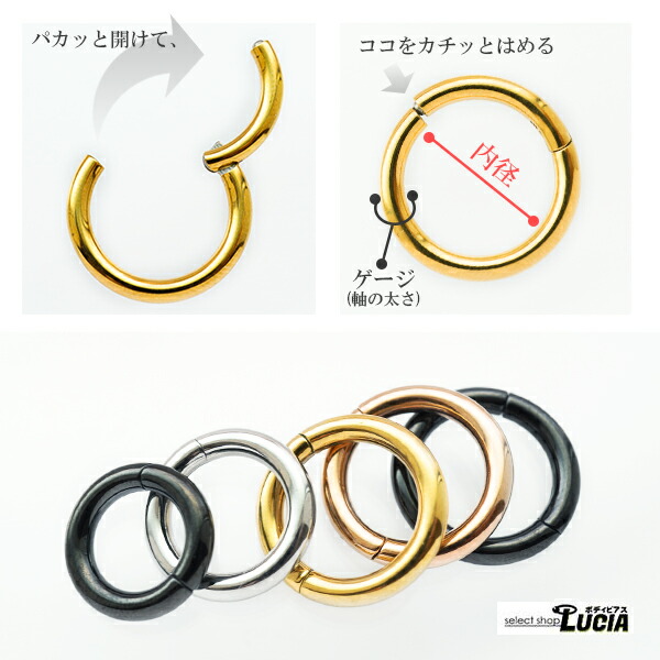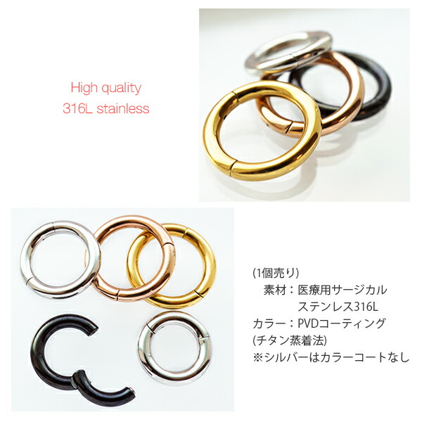 本日P2倍 簡単装着 調整済 8G カラー ボディピアス フープ ピアス クリッカーセグメント リング 金属アレルギー対応 医療ステンレス 316L つけっぱなし 拡張