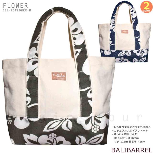 ■balibarrel バリバレル キャンバス地 フラワー ボタニカル 柄 ハワイアン トートバッグ Mサイズ ■