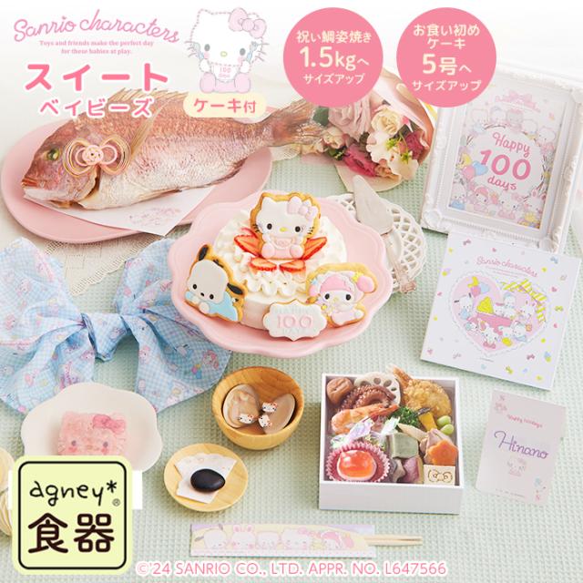 お食い初め セット 料理 【サンリオキャラクターズベイビーズ お食い初め膳 -スイートベイビーズ-(鯛1.5kg・ケーキ5号) サンリオ×agney食器付き】ケーキ 歯固めの石 ARフォトフレーム