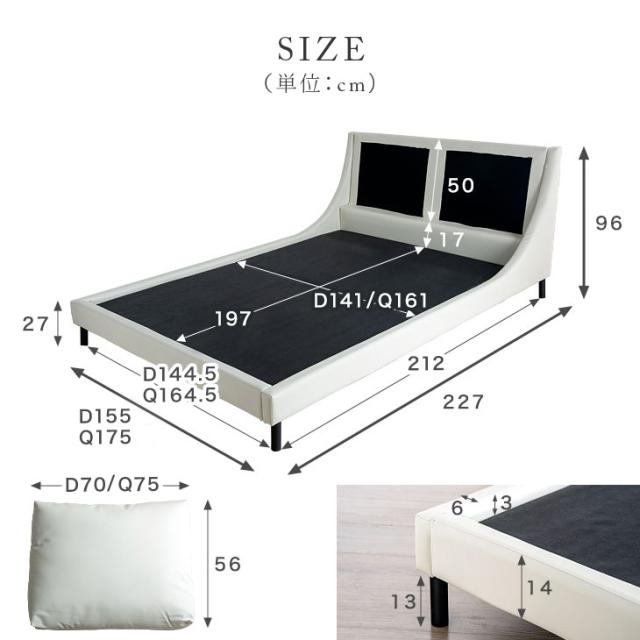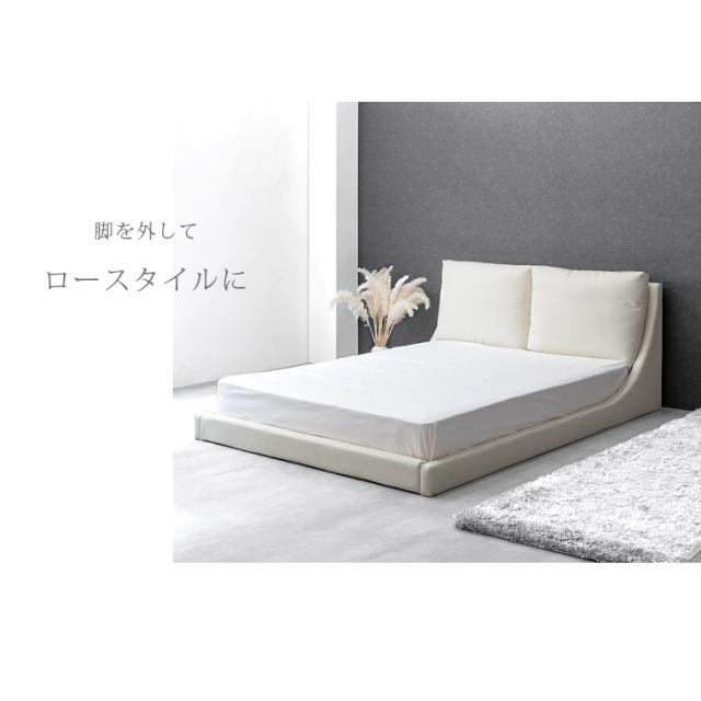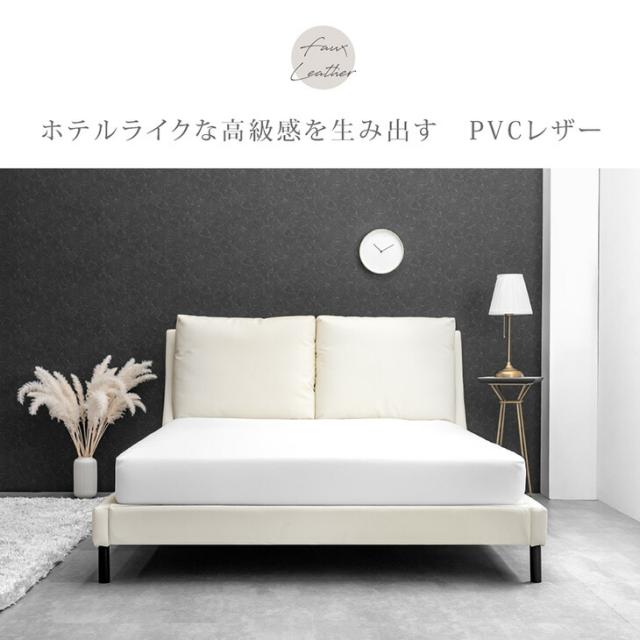 レザー調 ベッド ダブル フレーム クッション付 ベッド ベット ダブルベッド ダブルベット ローベッド ロースタイル クッション おしゃれ シック モダン シンプル ベッドフレーム