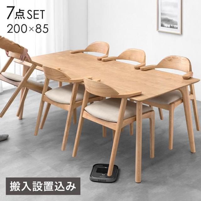 【正午〜P5%還元】 【テーブル搬入設置込】 ダイニングセット 6人掛け お掃除ロボット対応 7点セット 天然木アッシュ ハーフアームチェア 200cm テーブル ダイニングテーブルセット ダイニング ダイニングテーブル 6人 北欧 【超大型】【後払/時間指定NG】