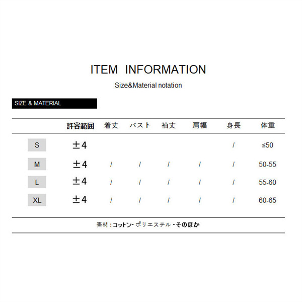 ※基本的に、XL・LL・2Lのサイズはすべて同じサイズです。