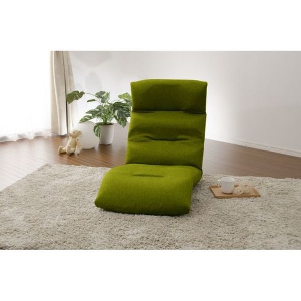 リラックスチェア (イス 椅子) /座椅子 (イス チェア) 【下タイプ グリーン】 14段階リクライニング 折りたたみ整理 収納 〔リビング雑貨 生活雑貨〕 緑 送料無料