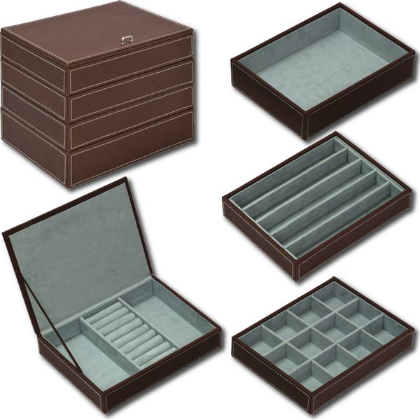 贅沢な整理 収納 空間、エレガントなデザイン、あなたの宝物を美しく包み込む ラグジュアリーな4段ジュエリー 宝石 ボックス、ブラウンレザー 茶 4段ジュエリー 宝石 ボックス ブラウン 茶