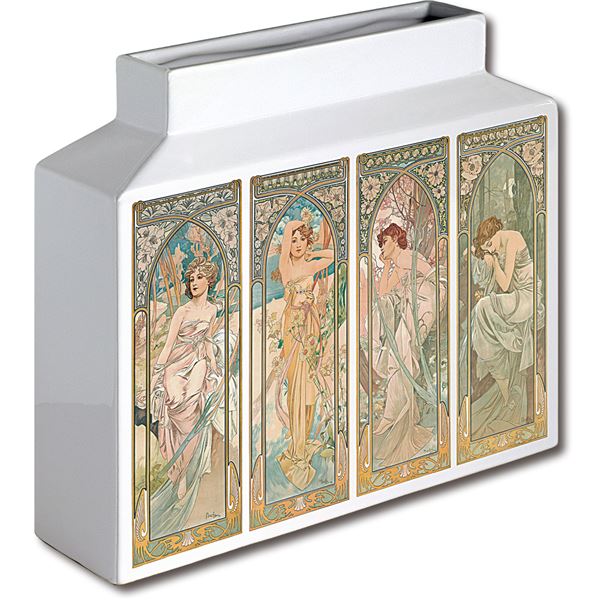 ★ミュージアムアート フラワーベース (Lサイズ・ヨコ) ミュシャ 「時の流れ」