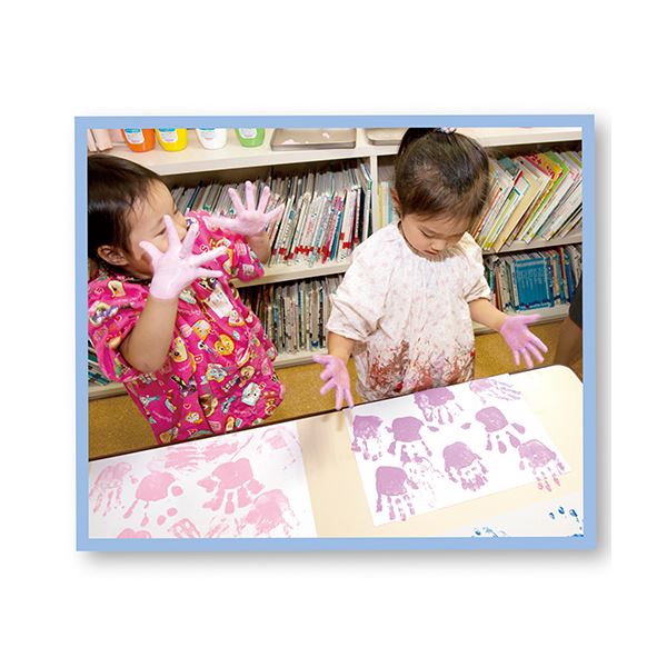 ●手や指でえのぐを伸ばし、色の混ざり具合を楽しめます。指の跡も残るので、お絵かきもできます。