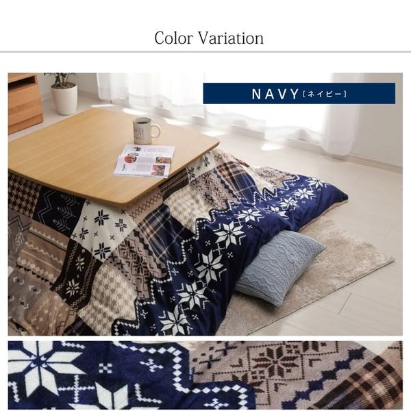 商品仕様: ノルディック柄 こたつ布団カバー/寝具 【ネイビー 約195×195cm】 正方形 撥水 洗える ファスナー付き 〔リビング〕