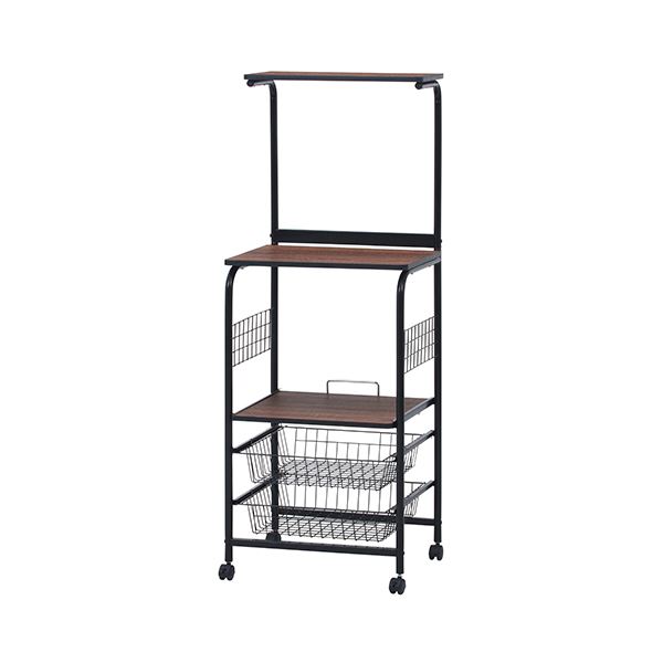 レンジ台 レンジボード レンジ棚 食器棚 キッチンボード 戸棚 キッチン 台所 整理 収納 幅515×奥行410×高さ1405mm ブラック×ブラウン キャスター 可動棚付き (置き台 置き場付き) 金属 スチール 移動便利 お客様組立品 黒 茶 送料無料