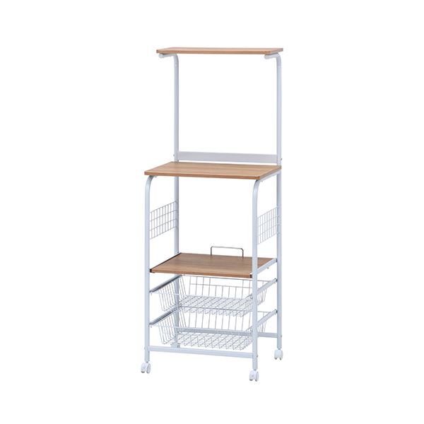 レンジ台 レンジボード レンジ棚 食器棚 キッチンボード 戸棚 キッチン 台所 整理 収納 幅515×奥行410×高さ1405mm ホワイト×ナチュラル キャスター 可動棚付き (置き台 置き場付き) 金属 スチール 移動便利 お客様組立品 白 送料無料