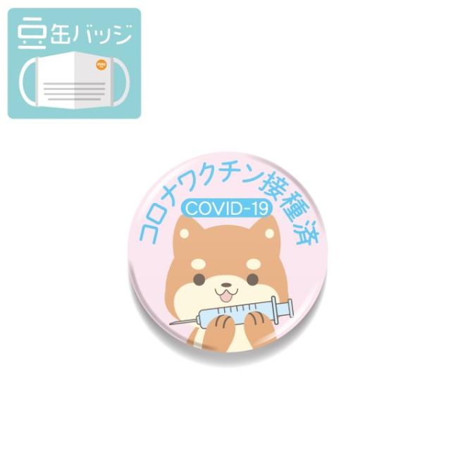 豆缶 マスクにつける缶バッジ ワクチン接種済 柴犬 ピンク 22mm 表示 アピール アクセサリー かわいい 缶バッジ