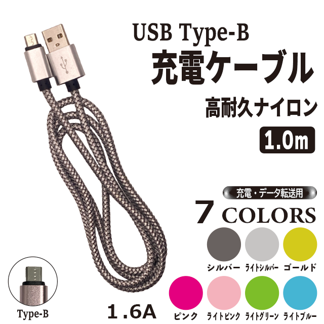 【 3本購入で+1本プレゼント! 】 Type-B ケーブル 1m ナイロン 充電 アンドロイド 【 商品レビュー記入でポイント10%還元 】