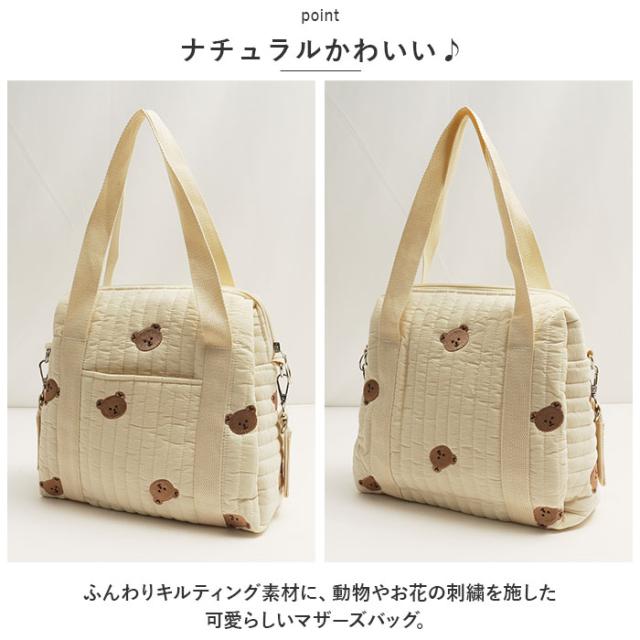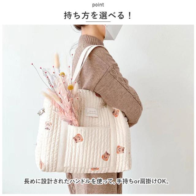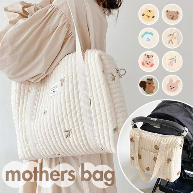 トートバッグ トートバック 通販 ママバッグ ママバック 大容量 ベビーカー 装着可 軽量 ショルダー 斜め掛け 刺繍 キルト ナチュラル コットン 綿 おしゃれ ファスナー ベビー 小学生 男の子 女の子