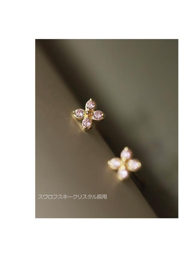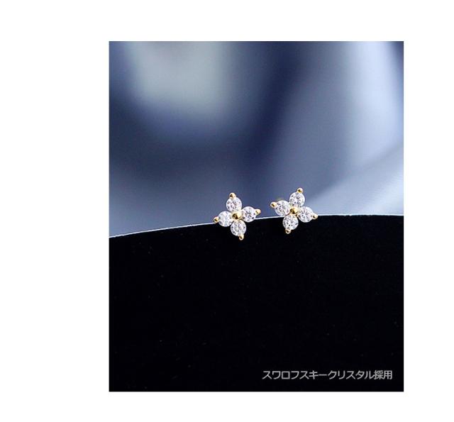 ピアス レディース 18金 仕上げ 花 小さめ ゴールド スワロフスキー ジルコニア採用 アレルギー対応 ポイント消化 大人 可愛い
