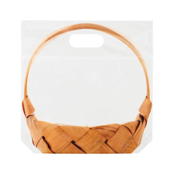 ●かごがプリントされたジップ付きバッグのMサイズ。
