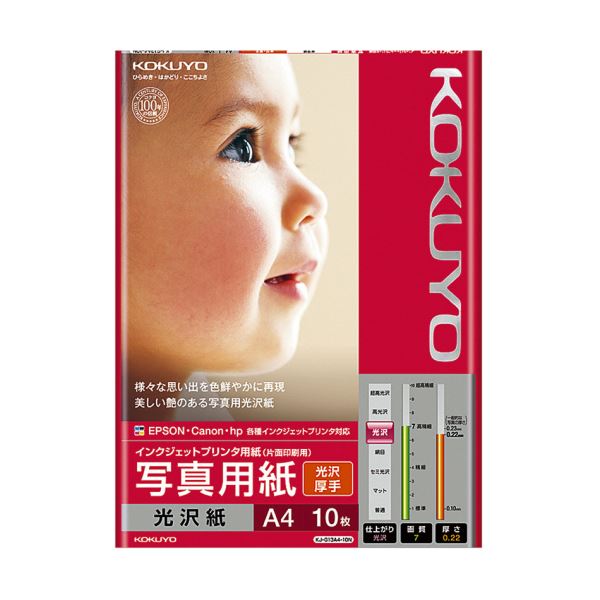 鮮やかな色彩と輝く輝度で、手軽に写真をプリント しっかりとした厚みのインクジェット用光沢紙A4 10枚×10セット (まとめ)コクヨ インクジェットプリンタ用紙写真用紙 光沢紙 厚手 A4 KJ-g 13A4-10N 1冊(10枚)【×10セット】