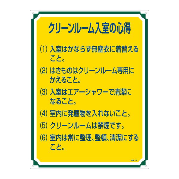 商品仕様: 管理標識 クリーンルーム入室の心得 管理116