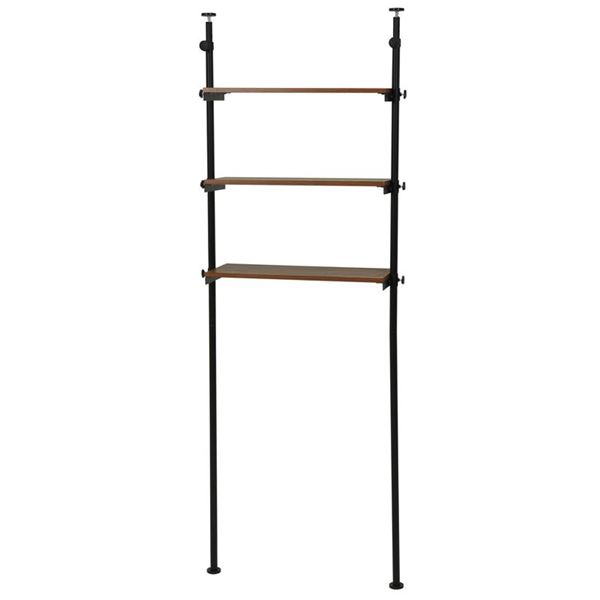 商品仕様: 突っ張り 洗濯機ラック 約幅70cm ブラック 黒×ブラウン 茶 棚板3枚 スチール ランドリーラック 組立式 脱衣所 洗面所