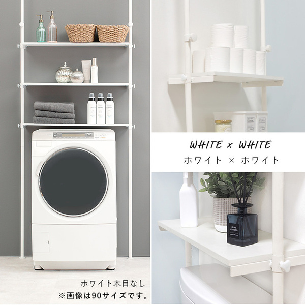 商品仕様: 突っ張り 洗濯機ラック 約幅70cm ホワイト 白 ×ナチュラル棚板3枚 スチール ランドリーラック 組立式 脱衣所 洗面所