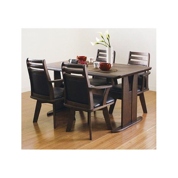 商品仕様: ダイニング 5点セット ダイニングテーブルセット 回転チェア テーブル幅135cm 木製 ブラッシング加工 ダークブラウン 茶 こげ茶 DBR お客様組立品