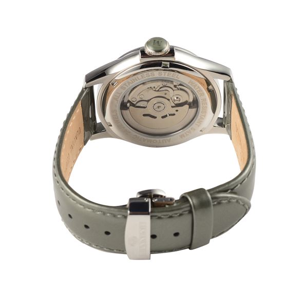 文字盤にも、デザインの中に革を取り入れており、裏蓋からムーブメントが見えるスケルトンモデルを採用、機械式の時計。ブックタイプボックス付き、交換が出来るベルト1本付き(工具も同梱)になります。