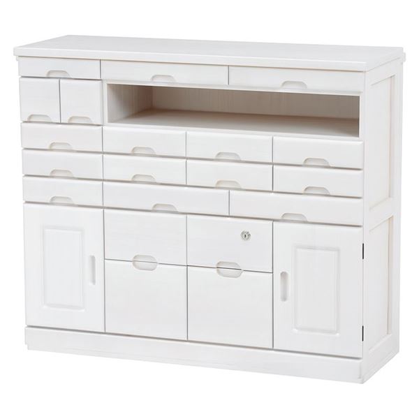 商品仕様: 桐製 FAX台/電話台 【多引き出し ウォッシュホワイト 白 幅93×奥行32×高さ78cm】 木製 〔リビング ダイニング 廊下 玄関〕