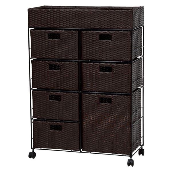 ランドリーラック 約幅70.5cm 引出し7杯 ダークブラウン 金属 スチール パイプ キャスター付 移動可能 車輪付き き ランドリー整理 収納 脱衣所 洗面所 茶 送料無料