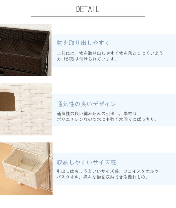 通気性の良い、引出しで水回りの収納もバッチリ!