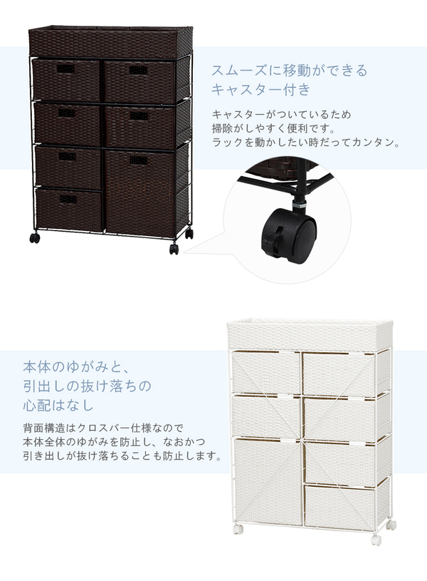 商品仕様: ランドリーラック 約幅70.5cm 引出し7杯 ダークブラウン 茶 こげ茶 スチールパイプ キャスター付き ランドリー収納 脱衣所 洗面所