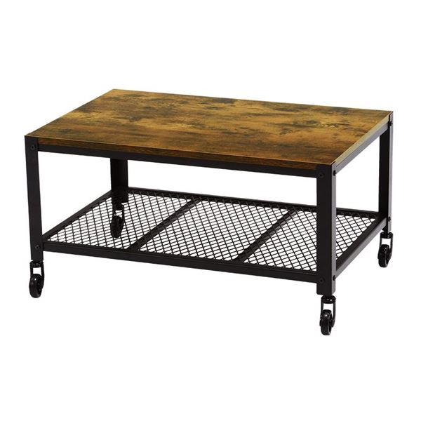 ヴィンテージ レトロ アンティーク 調デザインがモダンな金属 スチール フレームのリビングテーブル リビング用 応接テーブル 机 キャスター付 移動可能 車輪付き きで移動も簡単、棚板も付いて整理 収納 力も抜群 幅75×奥行50×高さ39.5cmのコンパクトサイズで、リビングにぴったりのセンターテーブル として活躍します ローテーブル 机 低い ロータイプ センターテーブル センターテーブル 約幅75×奥行50×高さ39.5cm 金属 スチール フレーム キャスター 棚板付き お客様組立品 リビング ダイニング
