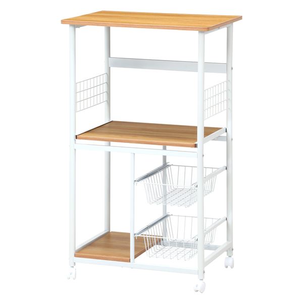商品仕様: レンジ台 キッチン収納 幅60×奥行46×高さ103.5cm ホワイト 白×ナチュラル キャスター付き スチール お客様組立品 リビング 台所