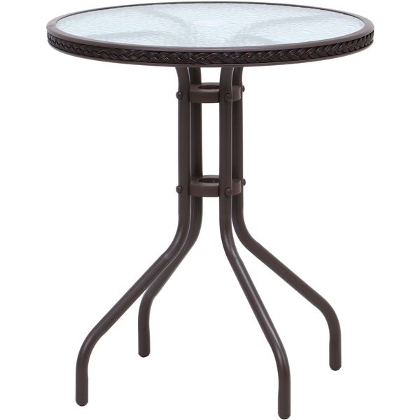 ガラステーブル 机 約幅60cm ブラウン 屋外用 鉄 強化ガラス ガーデンテーブル お客様組立品 ベランダ バルコニー ウッドデッキ 茶 送料無料