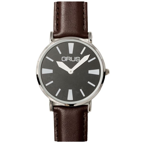 GRUS(グルス) ロービジョンウォッチ 【バンドカラー:ブラウン/文字盤カラー:ブラック/インデックスカラー:ホワイト】 GRS006-06 白 黒 茶 送料無料