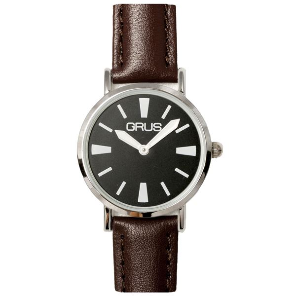 GRUS(グルス) ロービジョンウォッチ 【バンドカラー:ブラウン/文字盤カラー:ブラック/インデックスカラー:ホワイト】 GRS007-06 白 黒 茶 送料無料