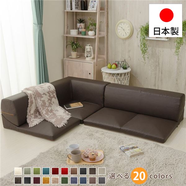 商品仕様: フロアソファー 3点セット 【コーナー付き PVC生地 ブラウン 茶】 本体:日本製 合皮/合成皮革張地 高耐久性 〔リビング〕
