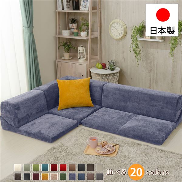 商品仕様: フロアソファー/ローソファー コーナー3点セット 【コールテン生地 ネイビー】 日本製 分割タイプ カバーリング コーナーソファー