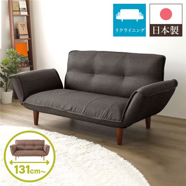 商品仕様: 日本製 リクライニングソファー/ローソファー 【2人掛け ダリアン生地 ブラウン 茶】 脚部:ブラウン 茶 幅130cm 肘付き 脚付き