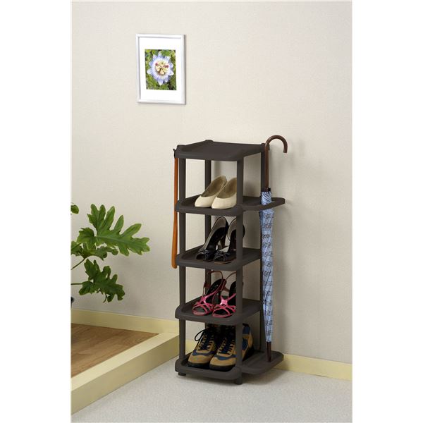 シューズラック 下駄箱 5段 シングル ブラウン 日本製 国産 玄関整理 収納 靴整理 収納 スリム 傘立て スリッパラック エントランス 入口 茶