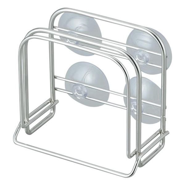 扱いやすいステンレス製のまな板スタンド。厚いまな板と薄いまな板を1枚ずつ立てられる構造。倒れにくい吸盤付。